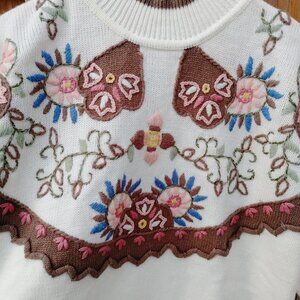 BEAUTIFUL Vintage PARAMOUR Embroidered Sweater FREE SIZE CIRCLE POCKETS