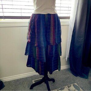 Gypsies inspired look, layered waterfall skirt with gold thread accent. Elastic hips. Medium fits. Beautiful and elegant looking. No rip or stain. Well loved.