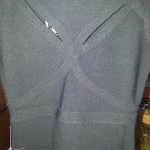 Jet black with detailing on bodice that gives it that corset look. Bandage dress fit / construction and fabric