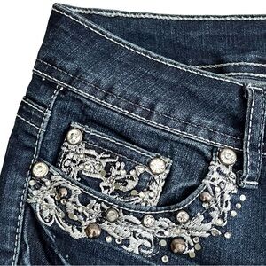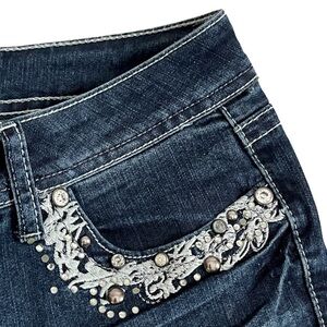 2b Bebe Embroidered and Rhinestone Embellished Skinny Jeans
