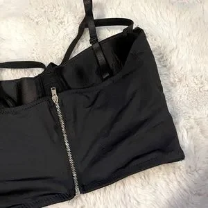 Bebe Ribbed Bustier Corset Top is in size small with straps that run against the chest creating a beautiful V shape design.