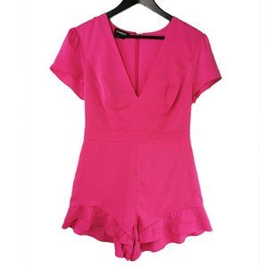 Adorable ruffle romper by Bebe in fushia pink.