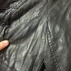 Please read! This jacket has flaws. There are quite a few areas where the faux leather is starting to crack and peel. Please see pics. Not sure if it can be fixed - selling as is. It is still a very cute jacket overall!