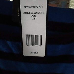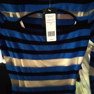 Royal blue, black stripes, with sheer stripes and a nude slip underneath (upper part)