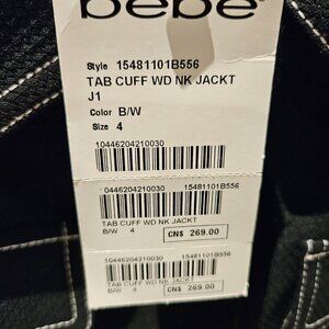 Super cute cropped jacket with 3/4 sleeves. Black cotton/rayon mix with white stitching and button detail.