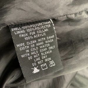 Faux-leather biker jacket with golden zippers. Nice cut. Used to have a faux-fur collar (see labels) but comes without. In pristine condition, no scratch or stain. Size 10 so large, for smaller sizes, is great if you want to wear heavy sweaters underneath.