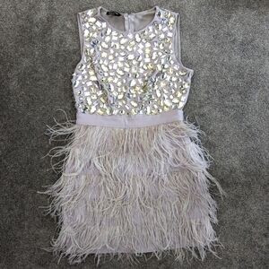 Bebe fringy feather beaded mesh mini cocktail dress size 4