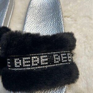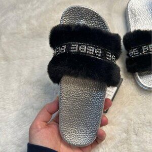 BEBE girls slides. Size 2/3. New with tags. faux fur and rhinestone detail.