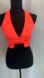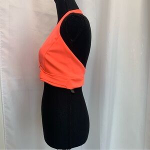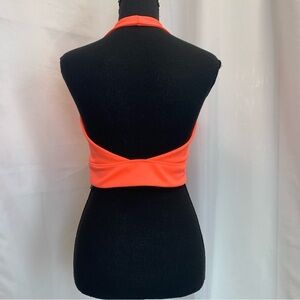 BEBE neon coral peach pink halter crop top open back Sz M NWOT