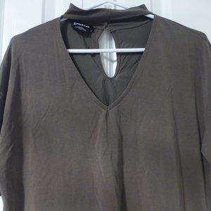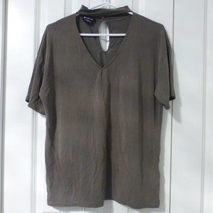 BEBE olive green oversized v-neck choker top