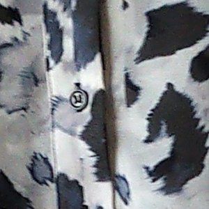 BEBE top. very long and roomy. very sheer. could be worn under a camisole or on its own. size Medium. very soft and flowy. it is sooooooooooooo comfortable. i wore it once. it is as if BRAND NEW.