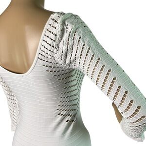 BEBE women fitted white top,mini cut outs,stretchy,bodycon,striped,retro