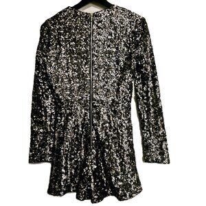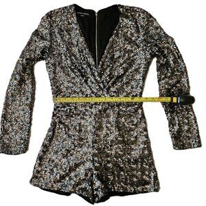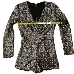 BEBE x NAVEN Bronze, Gunmetal, Gold, Sequin, Deep V-Neck, Romper Size 6
