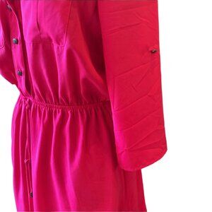 BEBOP - Pink Roll Up Sleeve Duo Pocket Safari Belted Collared Shirt Dress