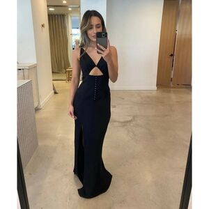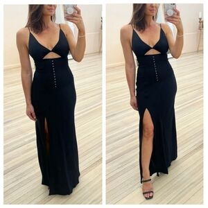 BEC + BRIDGE Teresa Maxi Dress Black Corset Cut Out Maxi Slit Gown Black 2