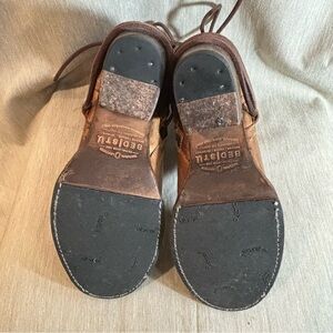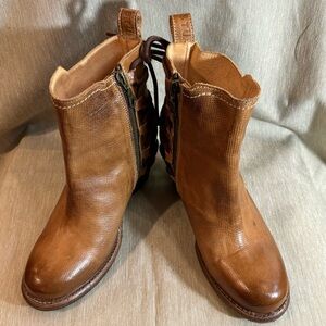 BED STU Sz 6.5 Stacked Heel Round Toe Cap Zipper Lace Up Back Ankle Booties Leather. Super cute. Cowgirl. Festival. Western. Boho. Bohemian all the vibes.