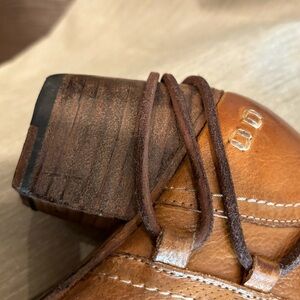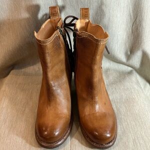 BED STU Sz 6.5 Blaire Stacked Heel Zipper Lace Up Back Ankle Booties Tan Rustic