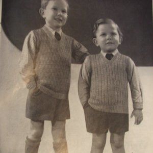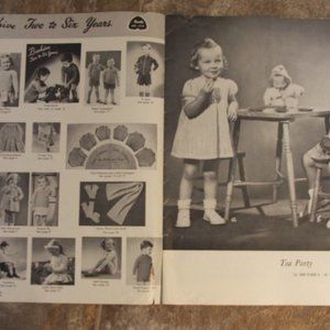 Great 50's vintage knitting pattern booklet. Twenty-nine pages of patterns for young children - 19 in all, including snowsuits, cardigans, sweaters, socks, scarves, hats, dresses. Black and white photos.