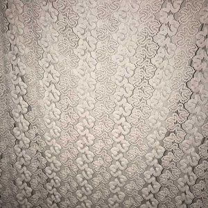 Beautiful double-lined maxi dress, the lining underneath hits slightly above the knee area (I am 5'5" for reference). This would fit up to a size 6.