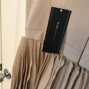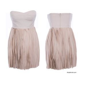 BEIGE STRAPLESS PLEATED PUMICE DRESS NWT