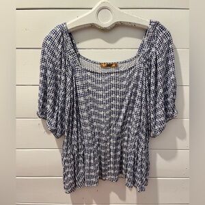 BELLDINI – Blue Gingham Embroidered Peasant Top – Size 3X