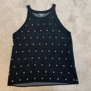 Belle By Belldini Black white polkadot knit tank top sweater Sz L NWT