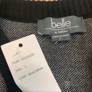 BELLE By Belldini Black white polkadot knit tank top sweater Sz L NWT
