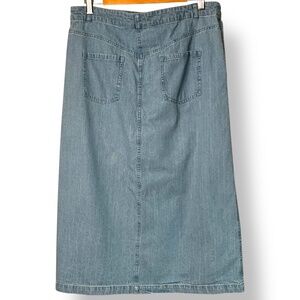 BELLE VERE 100% Cotton Light Wash Denim Midi Skirt w/ Front Slit & Pockets Sz 10