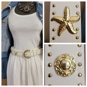 beautiful white with seashells and medallion accent / 38 in long x 1.5 in holes will fit waist 28 to 33 /