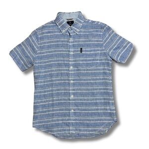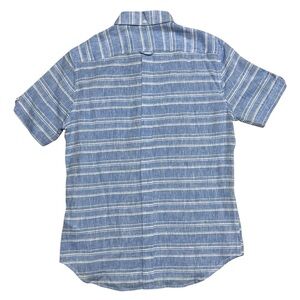 BEN SHERMAN Short Sleeve Stripe Print Linen Regular Fit Shirt, Blue/White, Small