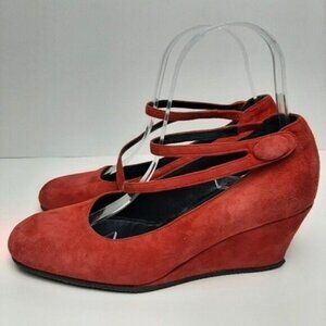 BENOITE C. Italy Mary Jane Wedge Heels Red Suede Sz 7.5