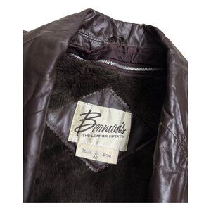 BERMANS Vintage Leather Fur Lined Retro 80s Brown Leather Parka Coat Mens Large