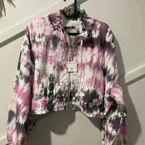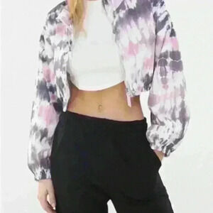 BERSHKA Tie Dye Cropped Zip Up Bomber Jacket Size M puffed sleeves