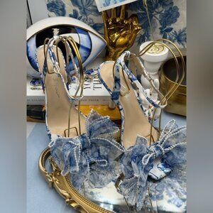 🆕 BETSEY JOHNSON 🧿 NWOB Fawn Slingback Sandal, Blue Toile Floral - Sz US 7.5