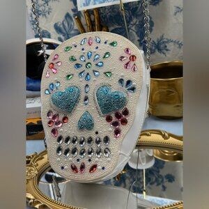 🆕 BETSEY JOHNSON 🧿 NWOT Bone-Jour Sugar Skull Crossbody Bag, White & Rainbow