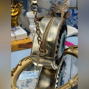 BETSEY JOHNSON Eyes Have It Gold Evil Eye & Crystal Bead Crossbody Bag