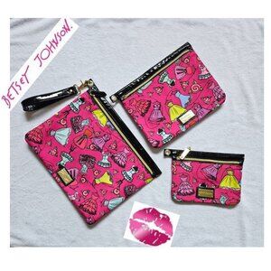 BETSEY JOHNSON, Set of 3 travel cosmetic bags in hot pink classic Betsey print!