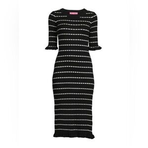BETSEY JOHNSON Striped Ribbed Knit Sweater Midi Dress