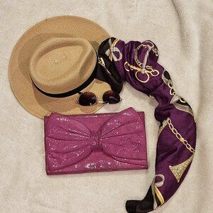 BETSEY JOHNSON - Vintage pink/purple front bow clutch bag with sparkle detail