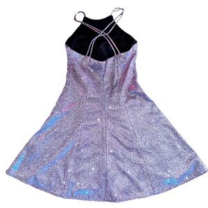 Sparkle with every single step in this metallic galaxy fit & flare dress from Betsy & Adam, designed with a gorgeous halter neckline.