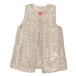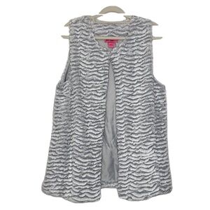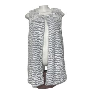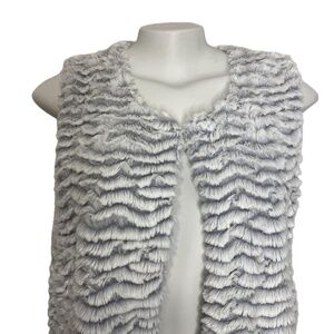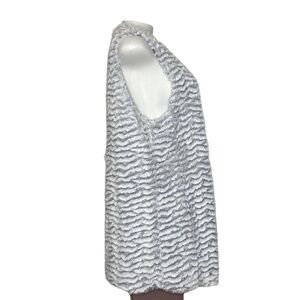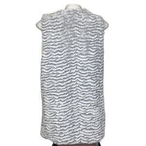 BETSY JOHNSON White Silver Gray Faux Fur Sleeveless Mobwife Retro Glam Vest L