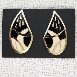 BFD Black Silver and White Enamel Vintage Earrings