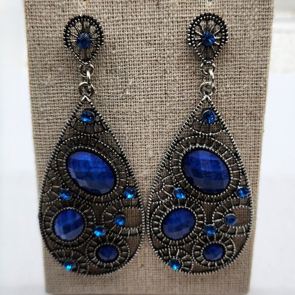 Bundle For discount applied Items!~ Blue & Silver tone Dangle Fashion Earrings. Just under 3 inches top to bottom, and 1 1/4 inches wide at widest point. Lightweight.