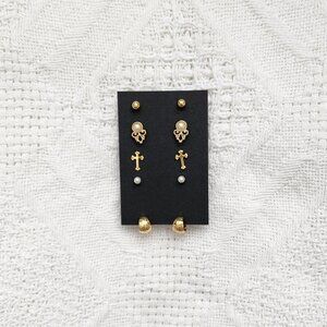 Bundle for discount applied items! Gold Toned Fashion Earring set in a Cross & pearls theme.