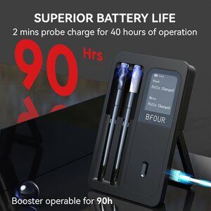 BFOUR 524FT Wireless Meat Thermometer Bluetooth with 2 Color-Coded Probes, Digital Food BBQ Thermometer Cooking with LCD Booster, 752°F Heat Resistance Meat Probes for Oven Grill and Smoker