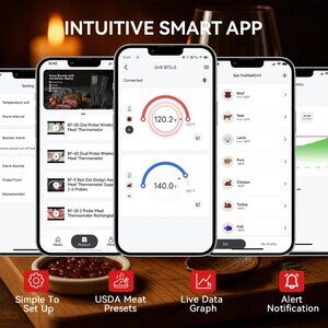 BFOUR 524FT Wireless Meat Thermometer Bluetooth with 2 Color-Coded Probes, Digit