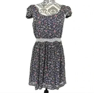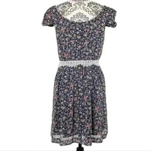 BG BCBGeneration Dress Mini Navy Floral Print Lace Cap Sleeves Women's size 6