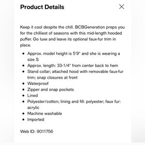 BGBG GENERATION Faux-Fur Trim Hooded Anorak Puffer Coat Size XS