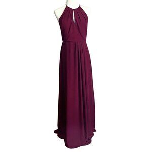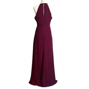 BHLDN TEAL EMERALD CHIFFON KEYHOLE SLIT EVENING FORMAL GOWN DRESS OB061859, this is a chic sleek perfect fall wedding bridesmaid dress in a solid emerald chiffon fabric in a sleeveless styling with a crewneckline giving place to a sexy keyhole feature in a faux-wrap upper bodice - side slit - back zip with keyhole and hook & eye fastening in the upper neckline - the long slit is sexy and flattering for the legs yet the whole features keeps it classic and classy -chic formal evening red carpet to prom dress with strappy sandals or peep toe heels.