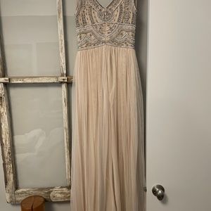 BHLDN beaded dress in size 2. Was worn once as a bridesmaid and has been dry cleaned and stored in a protective zip up. Easy to hem as the beading does not go to the floor. No damage, stains, or missing beads. No alterations. Retailed for 450.